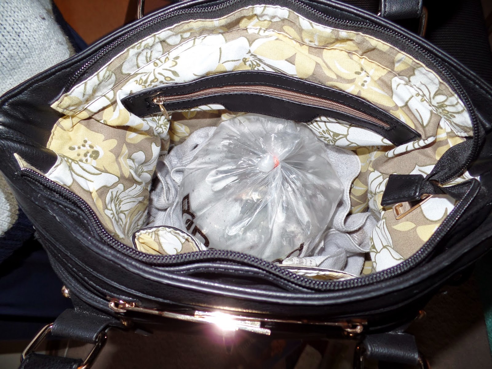 We had to go to another appt before the one where we could give the fish,and we couldn't leave her in the car cause she would freeze so we put her in sister Miller's purse and brought her in the lesson with us so we had a fish in our purse in a lesson and no one even knew! Hahaha it was funny. Here's Nema Milldavin j-chillin in the purse.